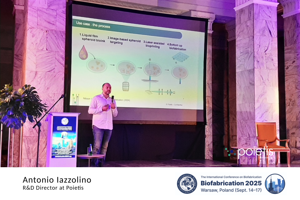 🧠 Antonio Iazzolino, R&D Director at Poietis, presented “AI-Guided Laser-Assisted Bioprinting of Organoids for High-Precision Biofabrication” during the session “Advancing 3D Bioprinting through Artificial Intelligence.”